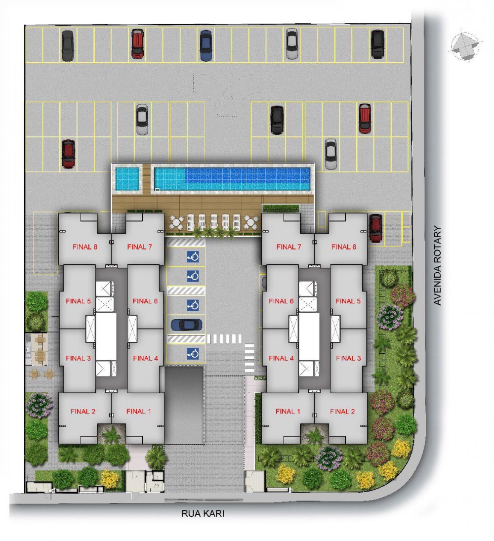 Torres: 2 residenciais 1 subsolo + Térreo + 17 andares - 8 unidades andar - 272 unidades Tipologia: 2 dormitórios