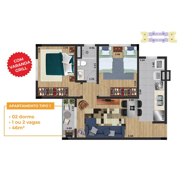 GAIA Residencial, o mais novo empreendimento em Guarulhos. Localizado na Alameda Yayá, 164 com apartamentos de 46m². Perfeito para você que deseja ter sua casa própria bem localizada! Venha conferir