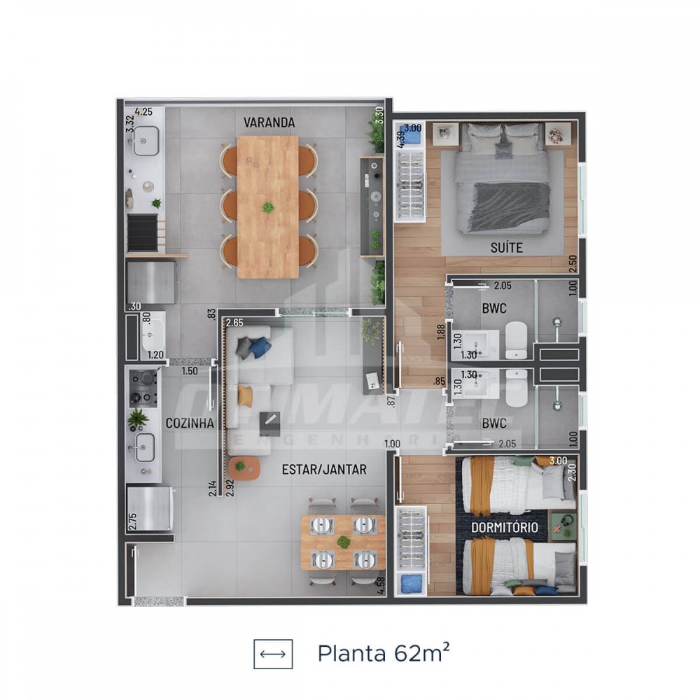 - Área Privativa: 62 m²