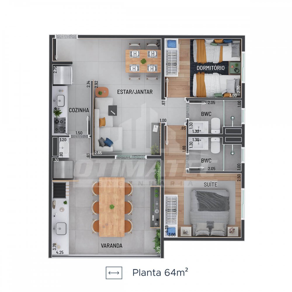 - Área Total: 64 m² (R$ 7.640/m²)